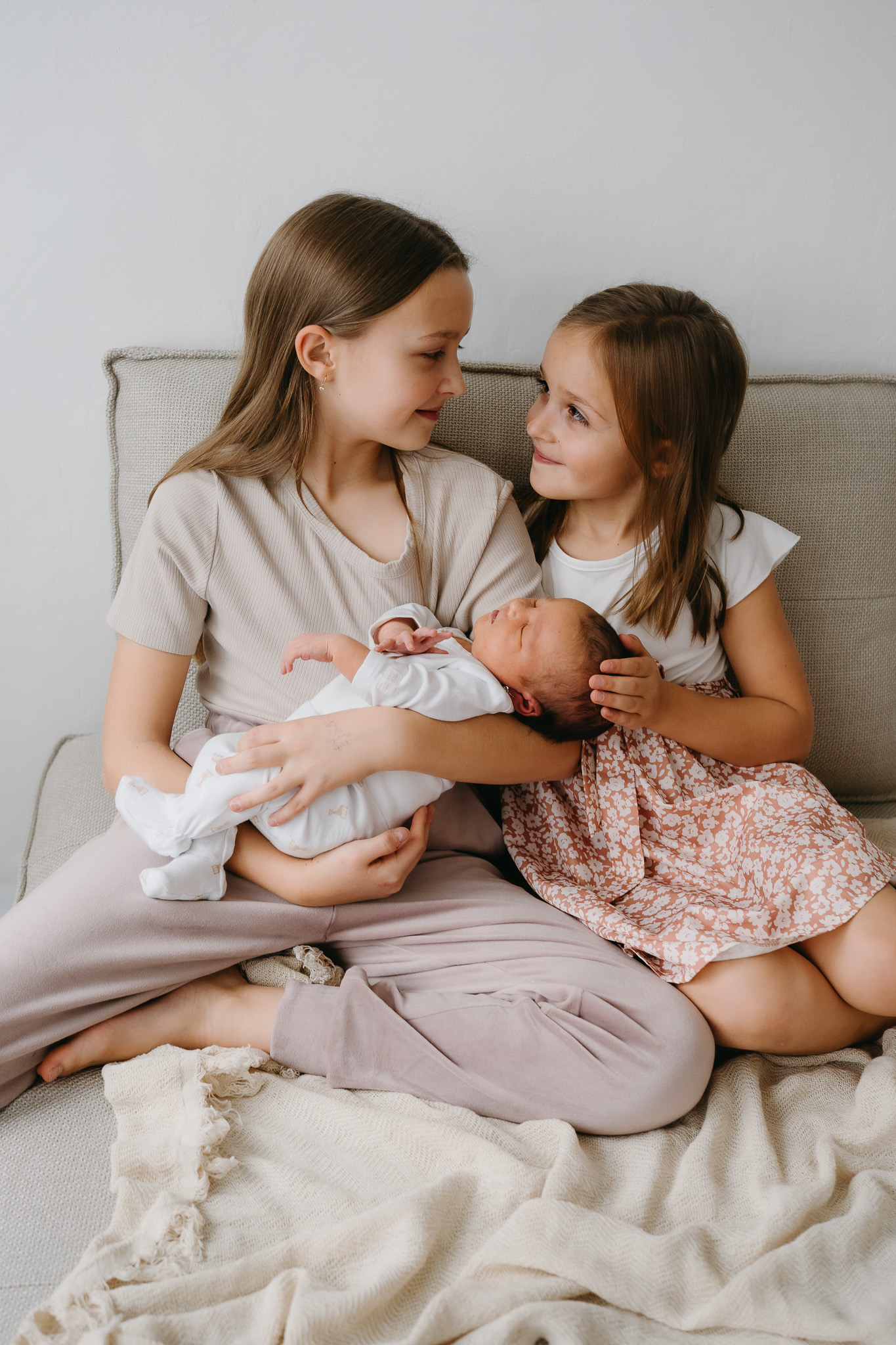 S miminkem manipuluju jemně a v klidu, vždy jste mu nablízku. Jemně ho zabalím do látky, různě miminko přikrývám a používám neutrální dekorace. Na focení máme dost času, počítám s kojením, přebalováním a mazlením podle vašich potřeb.
